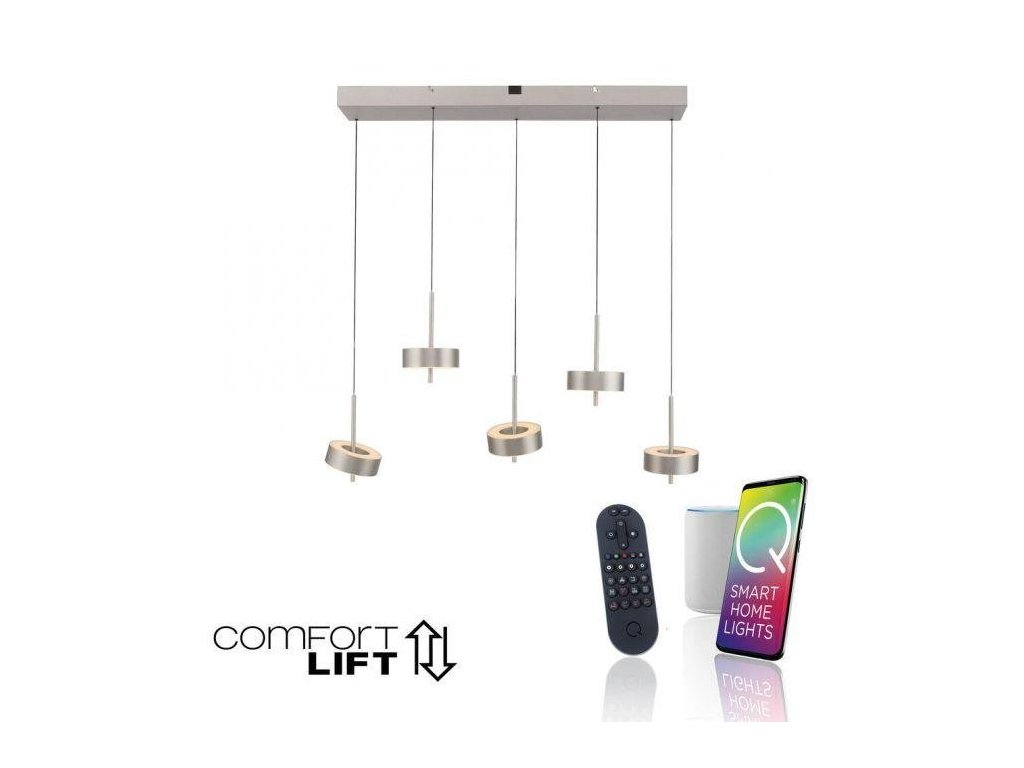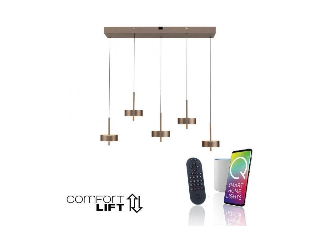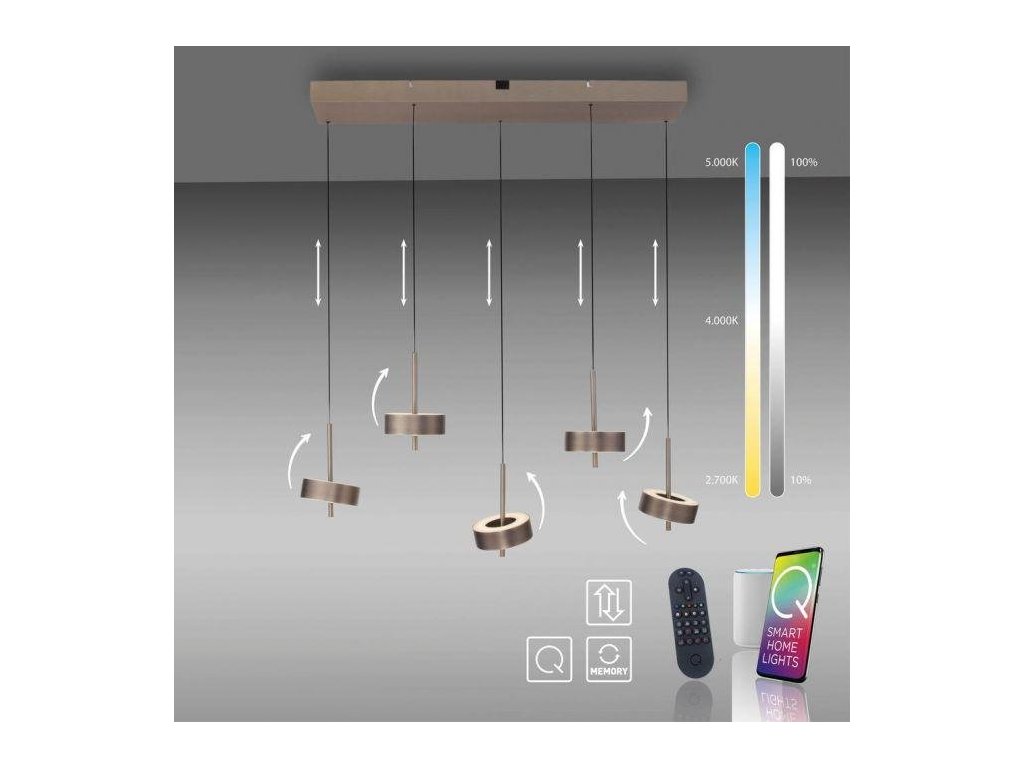 Závesné svietidlo Q-ROTATE 5 ramenné tmavá hnedá nastaviteľná výška ZigBee 2700-5000K - PAUL NEUHAUS