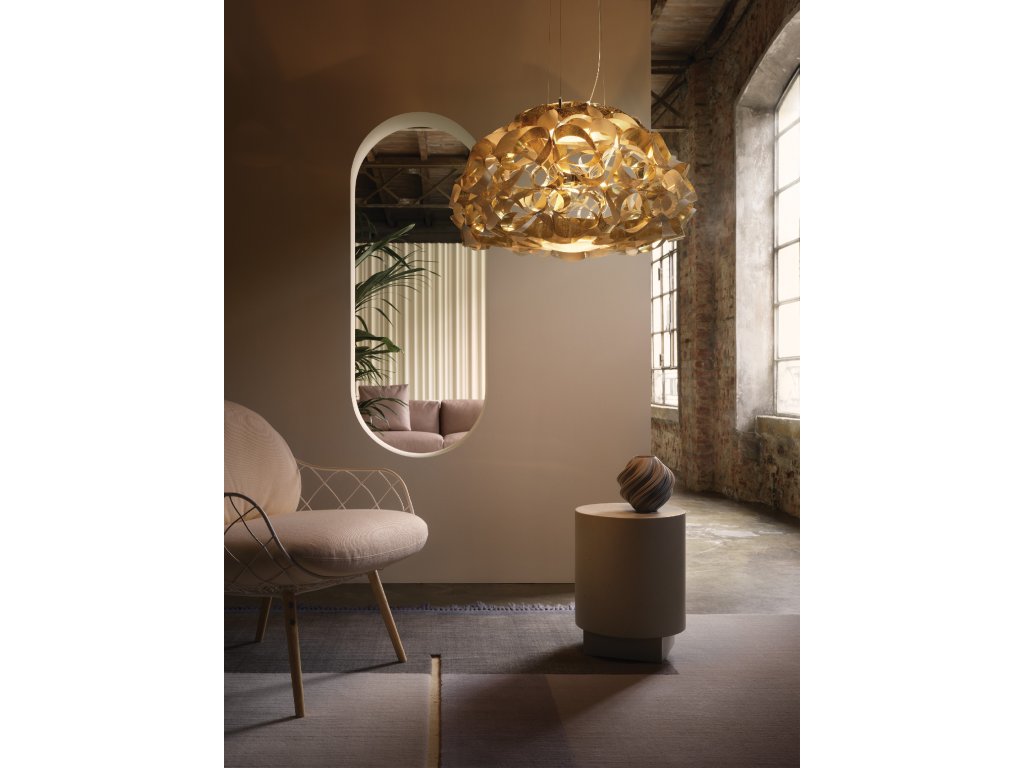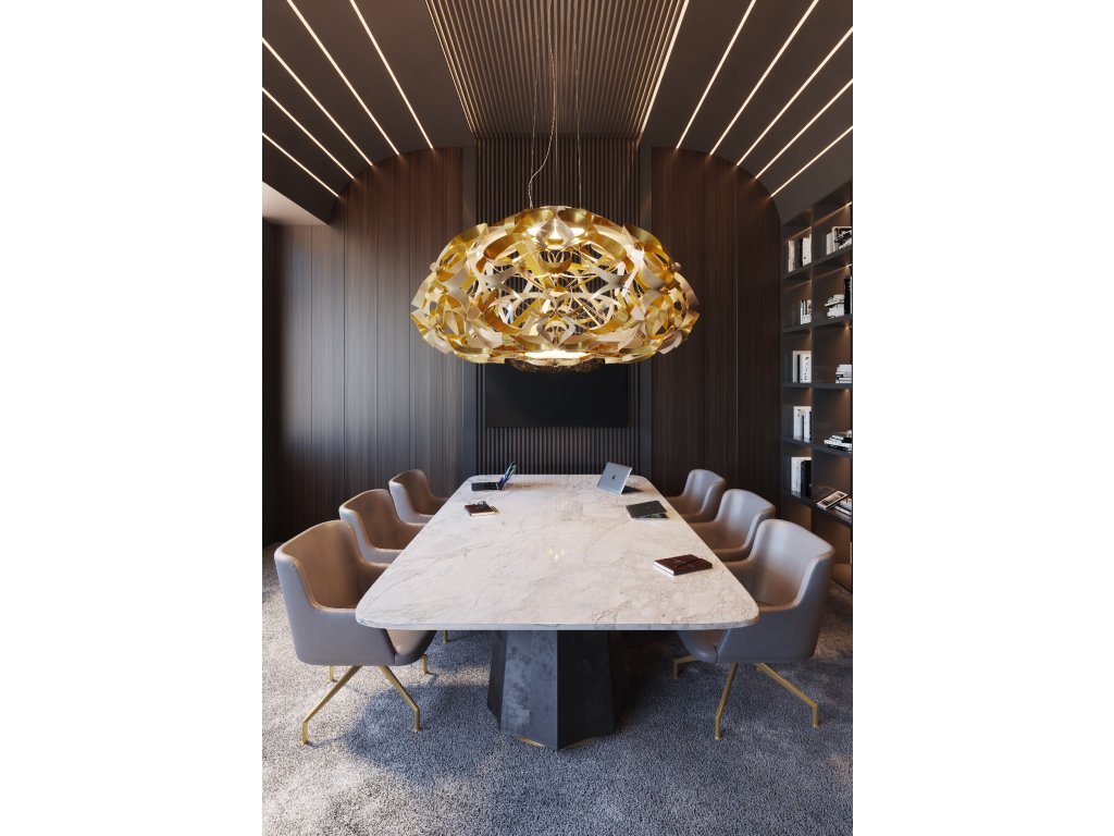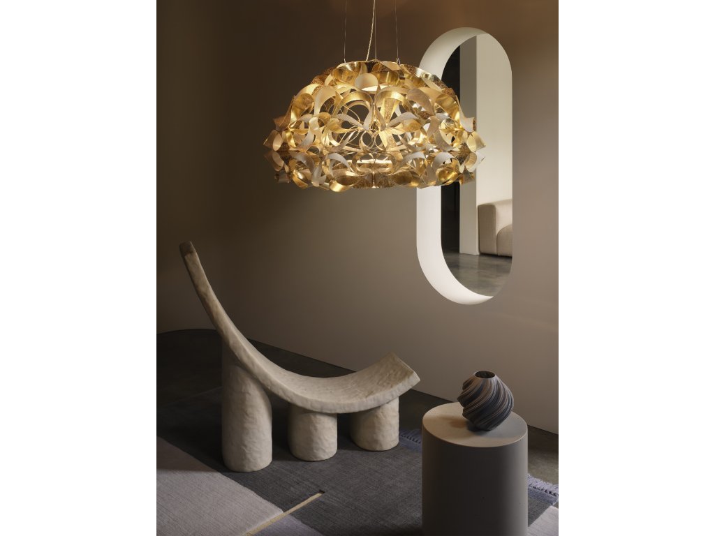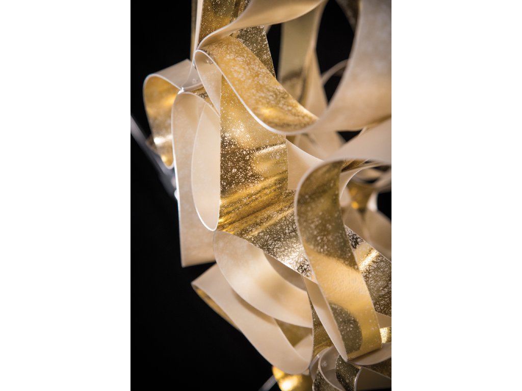 Quantica je inšpirovaná konceptom „kvantového prepletenia“, ktoré predstavuje kozmické prepletenie prvkov. Svetlo interaguje s tvarom v luxusnej, hutnej skulptúre ideálnej pre súkromné aj komerčné priestory. Zlatý textilný efekt bol aplikovaný na takmer beztiažový, nerozbitný technopolymér Opalflex, rezaný za studena a následne ručne vyrobený.