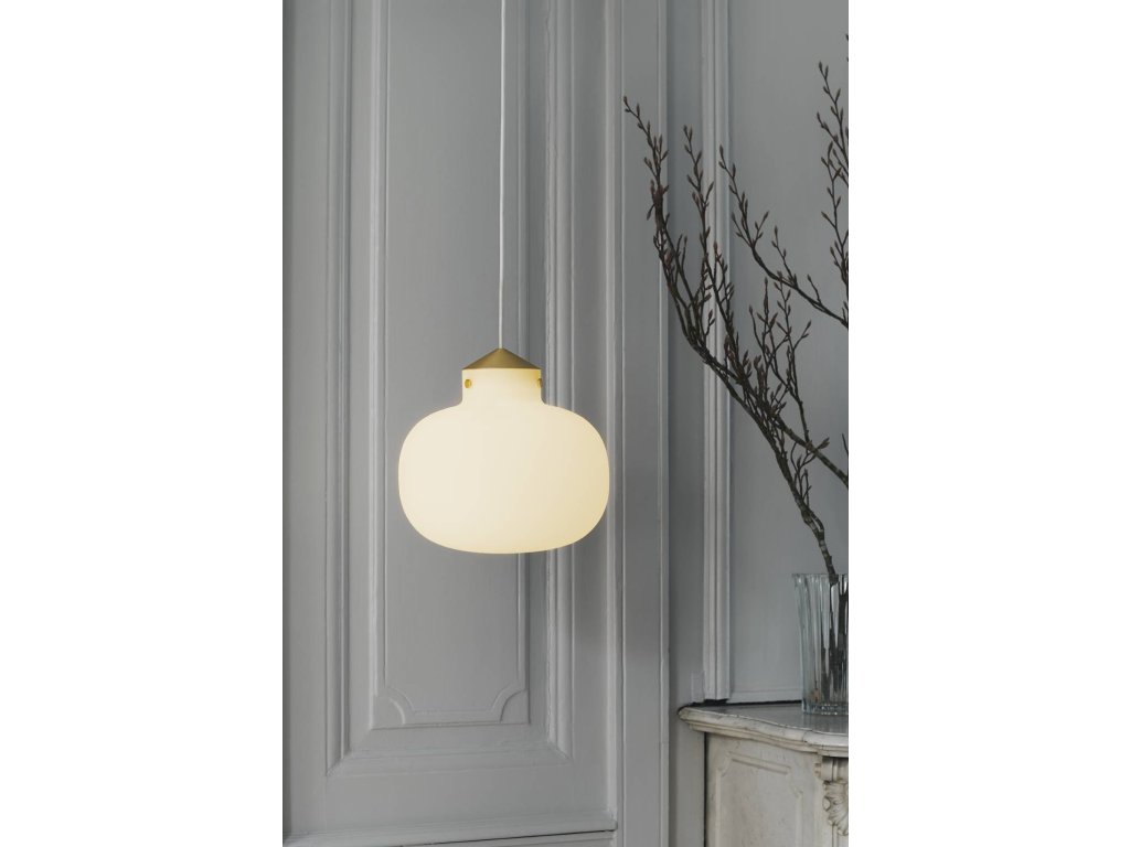 Mosadzná ozdobná strieška svietidla zasadená do opálového mliečneho skla a opatrená mosadznými skrutkami - to je poctivá sklenená kolekcia Raito. Tienidlo s priemerom 30 cm má oválny tvar a vyzerať bude skvele kdekoľvek u vás doma, zvlášť keď ho doplníte o svietidlá z rovnakého produktového radu.