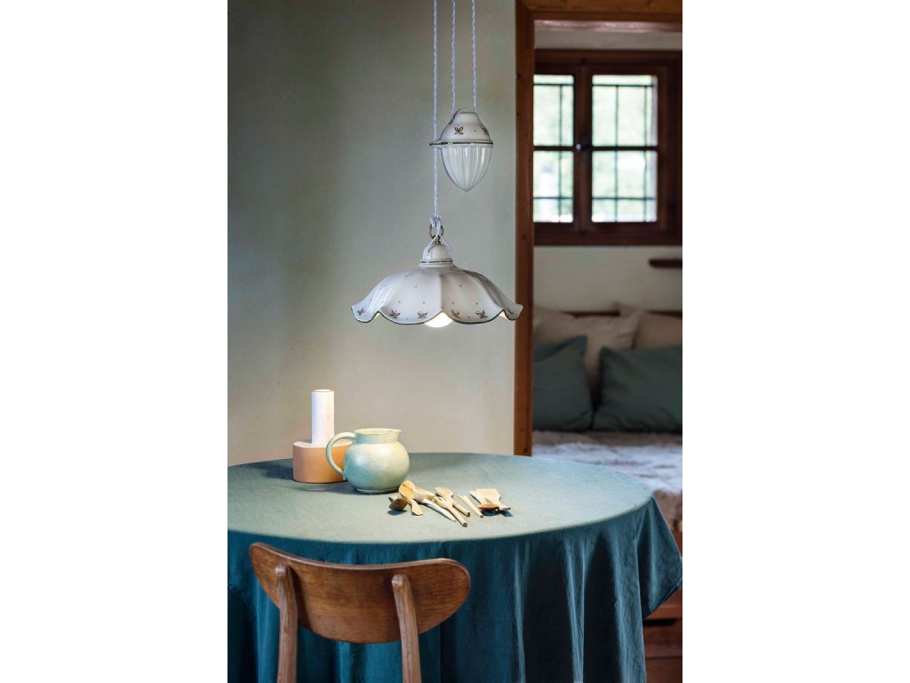 Svietidlo je v dekore MA av kovovom prevedení BO - biele s hnedým okrajom na tienidle.