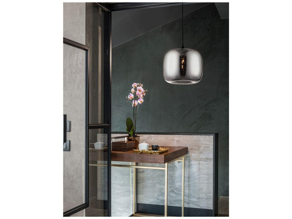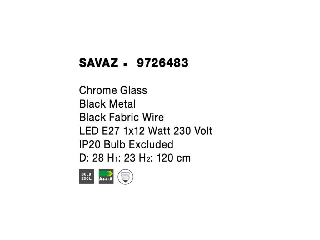 Závesné svietidlo SAVAZ chrómové sklo čierny kov čierny kábel E27 1x12W