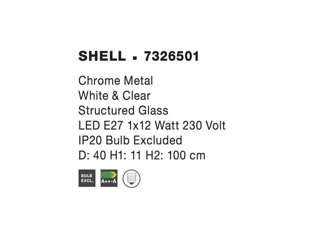 Závesné svietidlo SHELL chrómovaný kov biela a číre štruktúrované sklo E27 1x12W