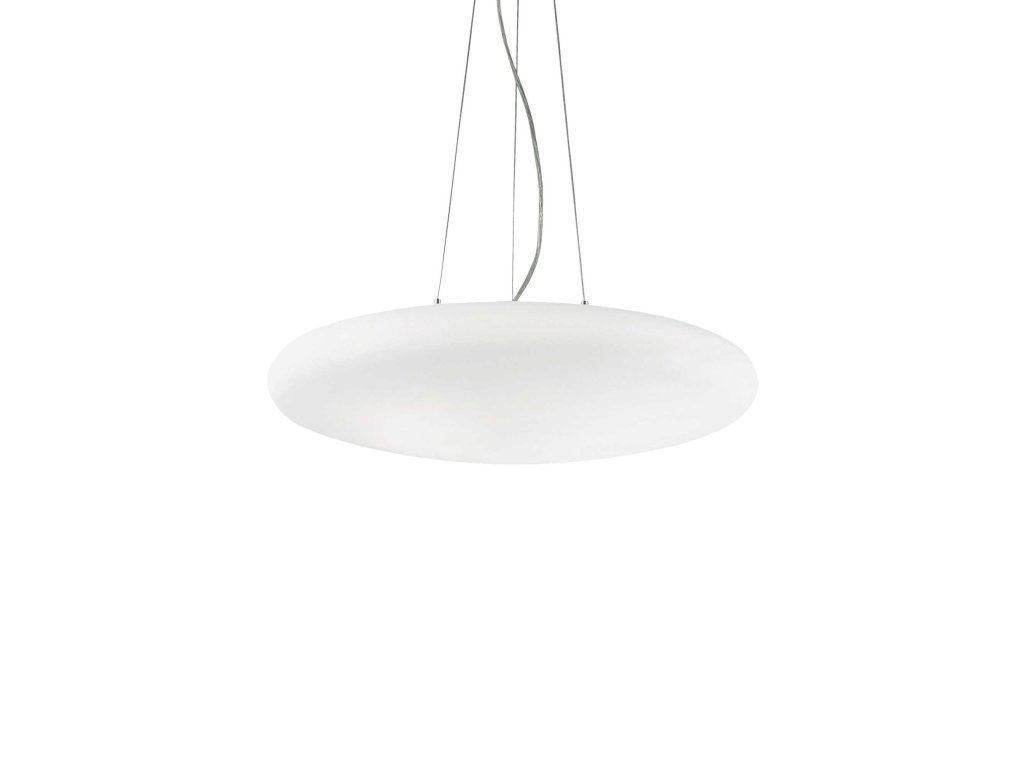Závesné svietidlo Smarties z kolekcie interiérového osvetlenia značky Ideal Lux v modernom štýle je ideálnou voľbou na osvietenie kuchyne, jedálne či obývacej izby. Jeho difúzor je vyrobený z bieleho fúkaného skla s priemerom 60 cm. Okrúhla základňa je zhotovená z kovu s bielo lakovanou povrchovou úpravou. S krytím IP20 sa jedná o interiérové svietidlo, ktoré je osadené päticami E27 pre žiarovky s maximálnym príkonom 5 x 60 W. Žiarovky nie sú súčasťou balenia, ale odporúčame použiť LED žiarovky pre úsporu elektrickej energie. Celkové rozmery svietidla sú 231,5 x 60 x 60 cm. Výšku závesu je možné regulovať od 22,5 cm do 231,5 cm dĺžky. Je určené na napájanie zo siete na 220-240 V.Dodatočné parametre