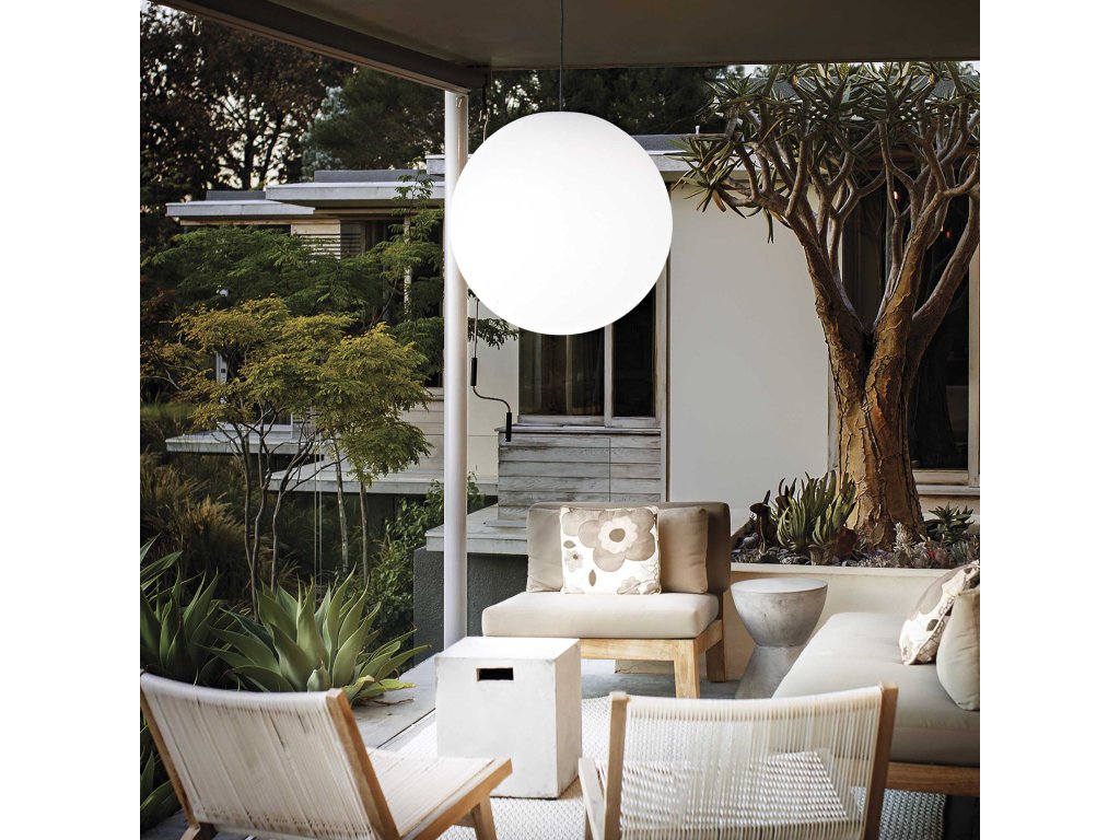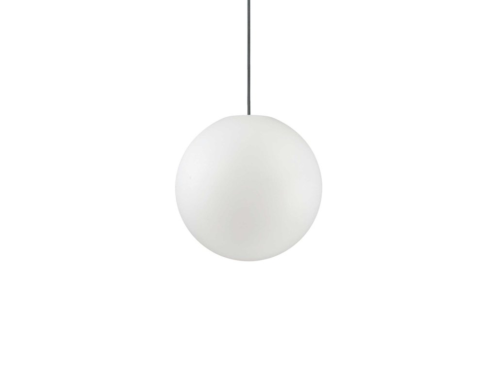 Závesné svietidlo Sole z kolekcie vonkajších svietidiel značky Ideal Lux v najmenšom variante s priemerom 30 cm dokonale osvieti Vašu terasu, balkón, altánok či pergolu. Okrúhly difúzor je plastový v opálovej farbe a je osadený päticou E27 pre žiarovku s maximálnym príkonom 1 x 60 W. Zdroj nie je súčasťou balenia, odporúčame zvoliť úspornú LED žiarovku s dlhou dobou životnosti. Základňa je vyrobená z kvalitného hliníka v čiernej farbe. Závesné lanko je výškovo nastaviteľné od 38 cm do 121 cm dĺžky. Krytie IP44 chráni pred striekajúcou vodou. Celkové rozmery sú 121 x 30 x 30 cm. Je určené na napájanie zo siete na 220 - 240 V.Dodatočné parametre