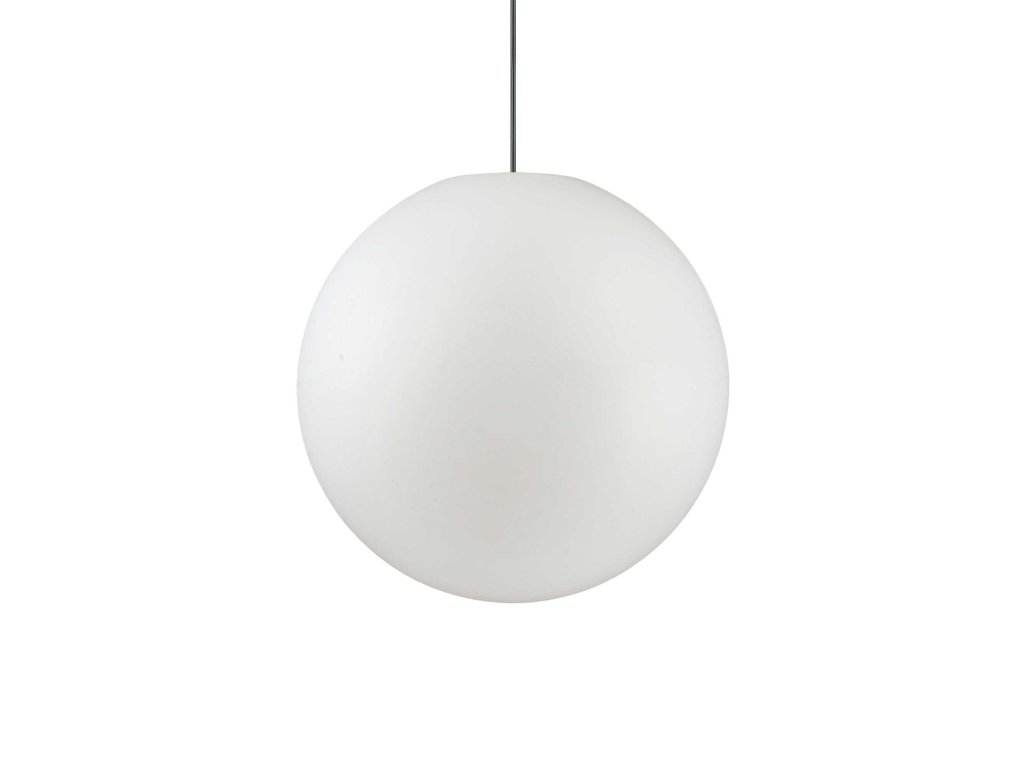 Závesné svietidlo Sole z kolekcie vonkajších svietidiel značky Ideal Lux v najväčšom variante s priemerom 50 cm dokonale osvieti Vašu terasu, balkón, altánok či pergolu. Okrúhly difúzor je plastový v opálovej farbe a je osadený päticou E27 pre žiarovku s maximálnym príkonom 1 x 60 W. Zdroj nie je súčasťou balenia, odporúčame zvoliť úspornú LED žiarovku s dlhou dobou životnosti. Základňa je vyrobená z kvalitného hliníka v čiernej farbe. Závesné lanko je výškovo nastaviteľné od 65 cm do 143,5 cm dĺžky. Krytie IP44 chráni pred striekajúcou vodou. Celkové rozmery sú 143,5 x 50 x 50 cm. Je určené na napájanie zo siete na 220 - 240 V.Dodatočné parametre