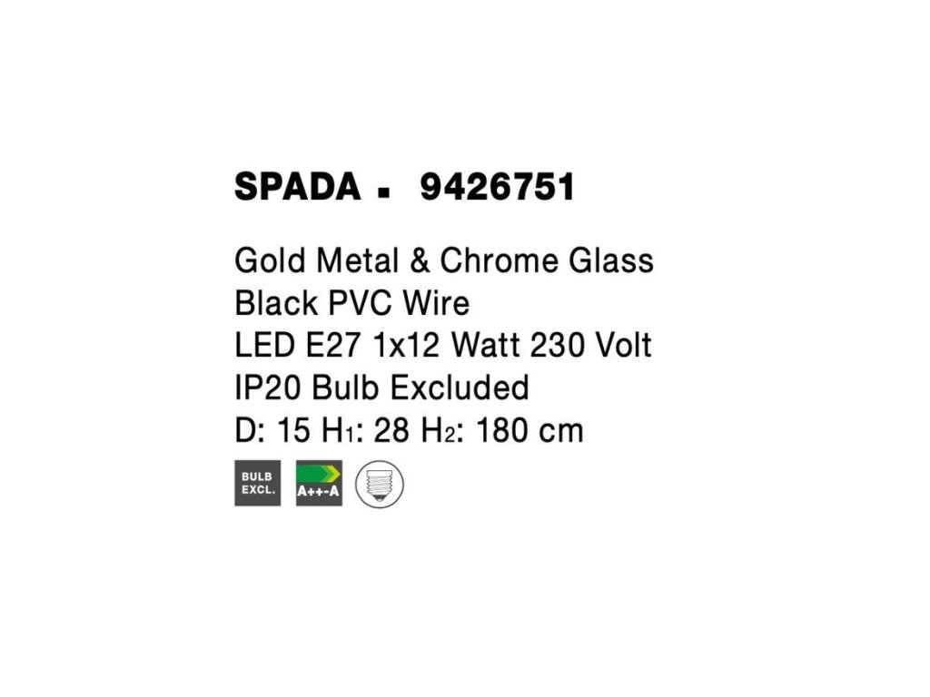 Závesné svietidlo SPADA zlatý kov a chrómové sklo, E27 1x12W