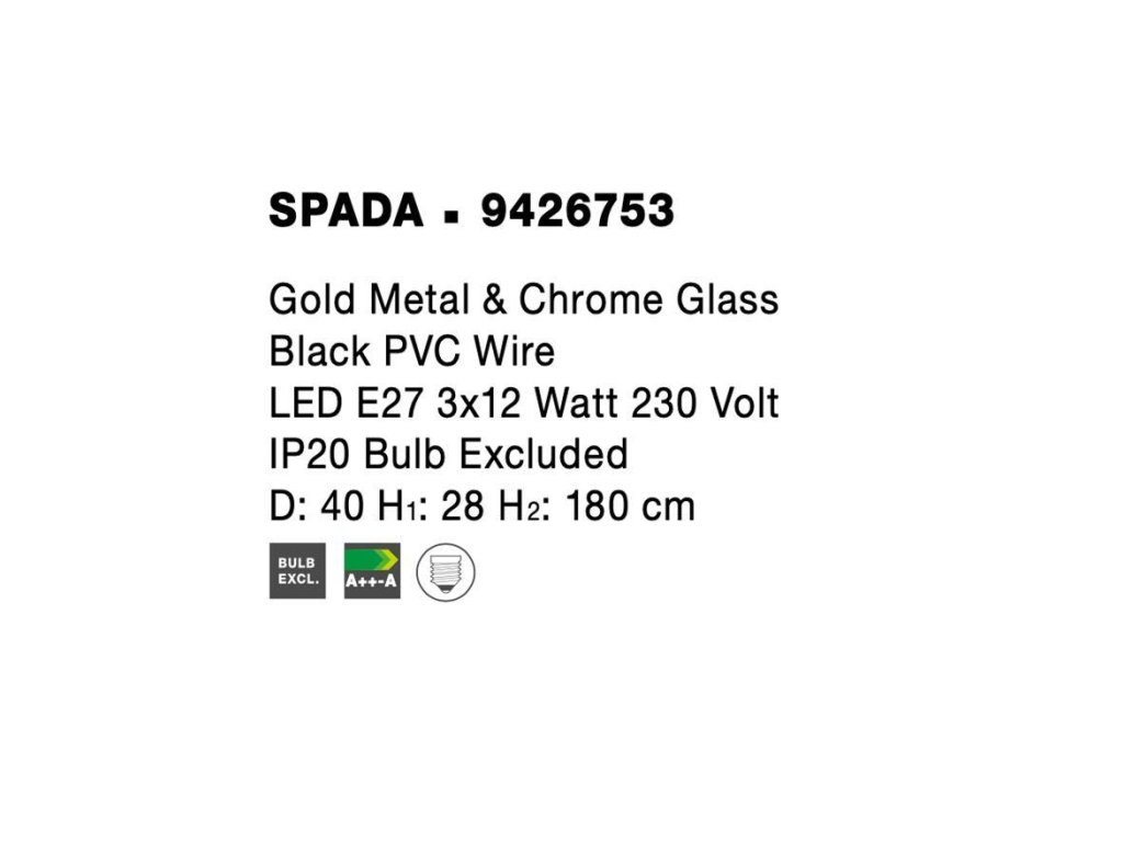Závesné svietidlo SPADA zlatý kov a chrómové sklo, E27 3x12W