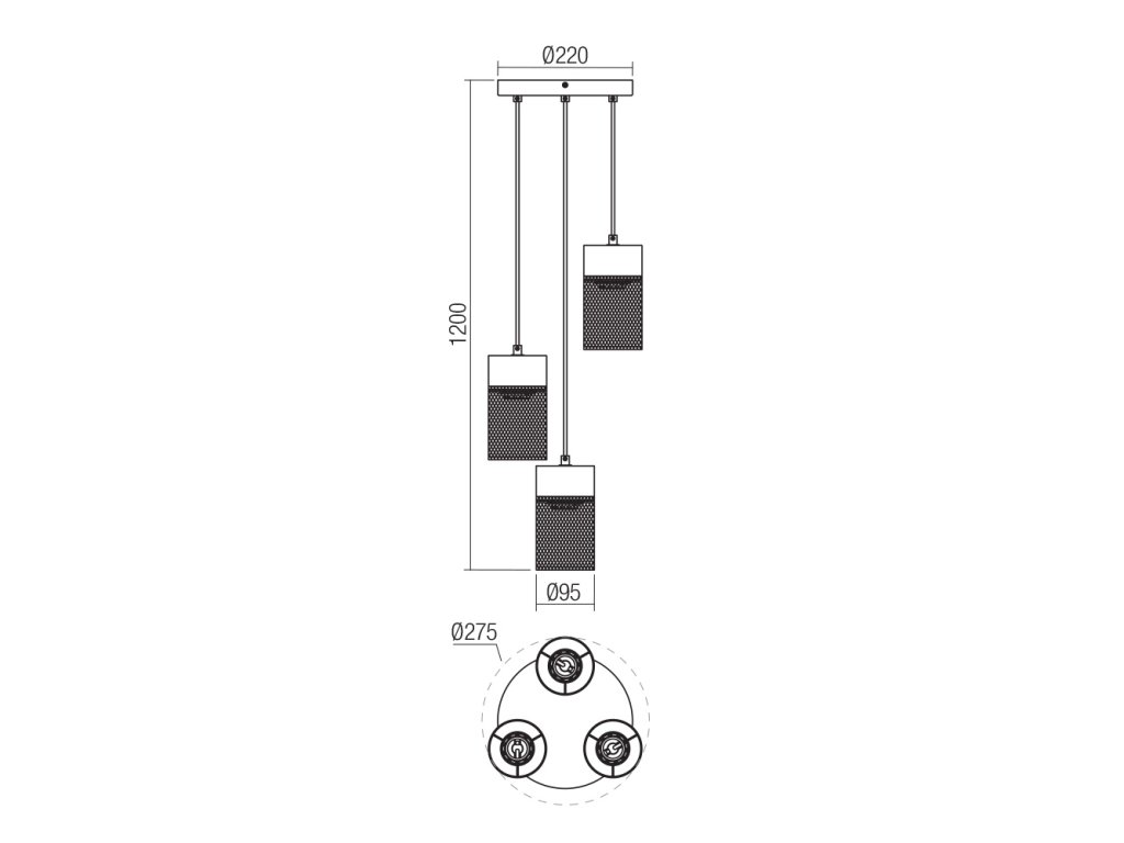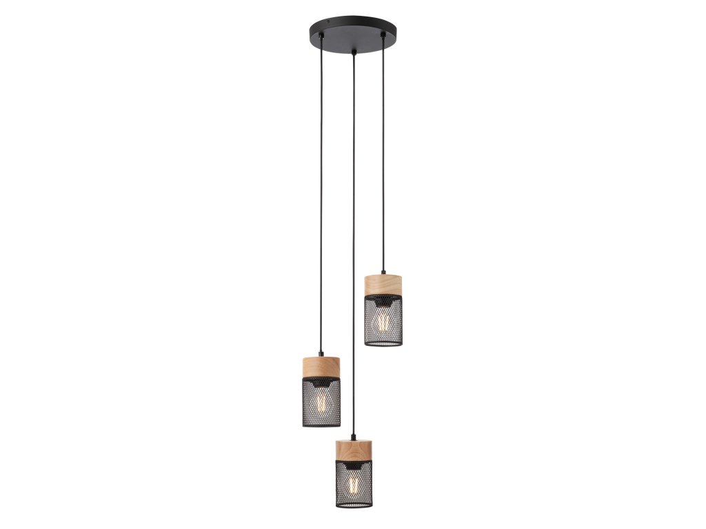 Závesné svietidlo do interiéru, kovová konštrukcia lakovaná matnou čiernou farbou s prvkom prírodného dreva, kovový difúzor lakovaný matnou čiernou farbou.