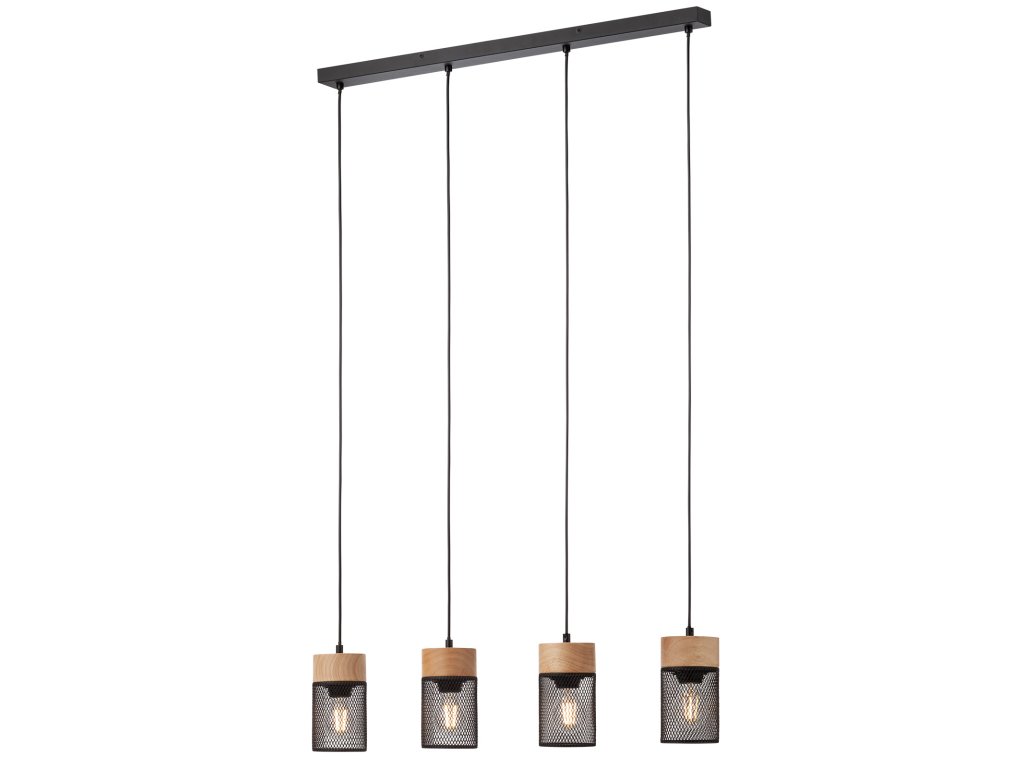 Závesné svietidlo do interiéru, kovová konštrukcia lakovaná matnou čiernou farbou s prvkom prírodného dreva, kovový difúzor lakovaný matnou čiernou farbou.