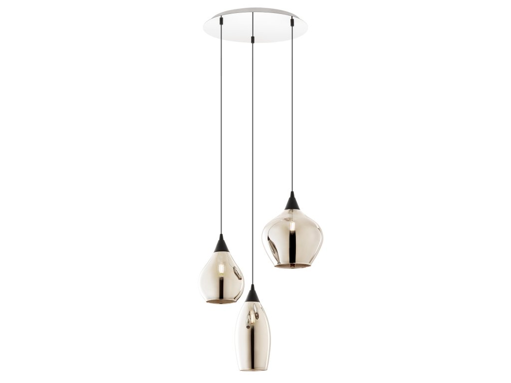 Interiérové závesné svietidlo, chrómovaná kovová konštrukcia, difúzory z dymového skla.