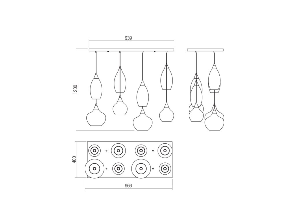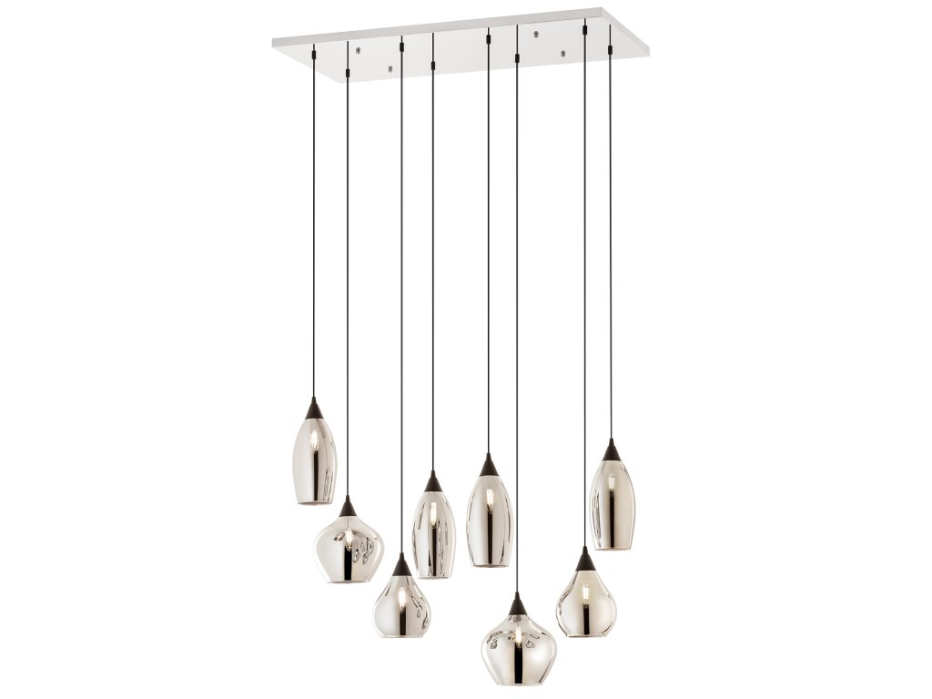 Interiérové závesné svietidlo, chrómovaná kovová konštrukcia, difúzory z dymového skla.