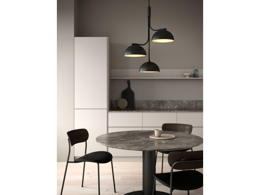 Závesné svietidlo Tullio od dánskych dizajnérov Anker vyniká tromi polguľatými tienidlami umiestnenými v rôznych výškach - elegantný tvar a zaujímavé umiestnenie vytvára veľkolepý dojem prepožičiava vzhľad sochárskeho dizajnu.