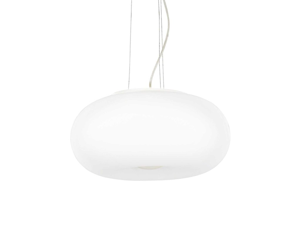 Závesné svietidlo Ulisse z kolekcie moderného osvetlenia značky Ideal Lux sa dokonale hodí do každého interiéru a dodá dostatok svetla v obývacej izbe, kuchyni či jedálni. Vzhľadom k nízkemu krytiu IP20 je určené iba na vnútorné použitie. Je zhotovené z kvalitných materiálov v bielej farbe. Kovová základňa je smaltovaná do matne bielej farby a doplnená o okrúhly difúzor z fúkaného skla leptaného kyselinou. Je osadené päticou E27 pre žiarovky s maximálnym príkonom 3 x 60 W. Zdroje nie sú súčasťou balenia. Odporúčame zvoliť LED žiarovky na úsporu elektrickej energie. Luster je určený na napájanie zo siete na 220-240 V. Celkové rozmery činia 29 x 52 x 52 cm.Dodatočné parametre