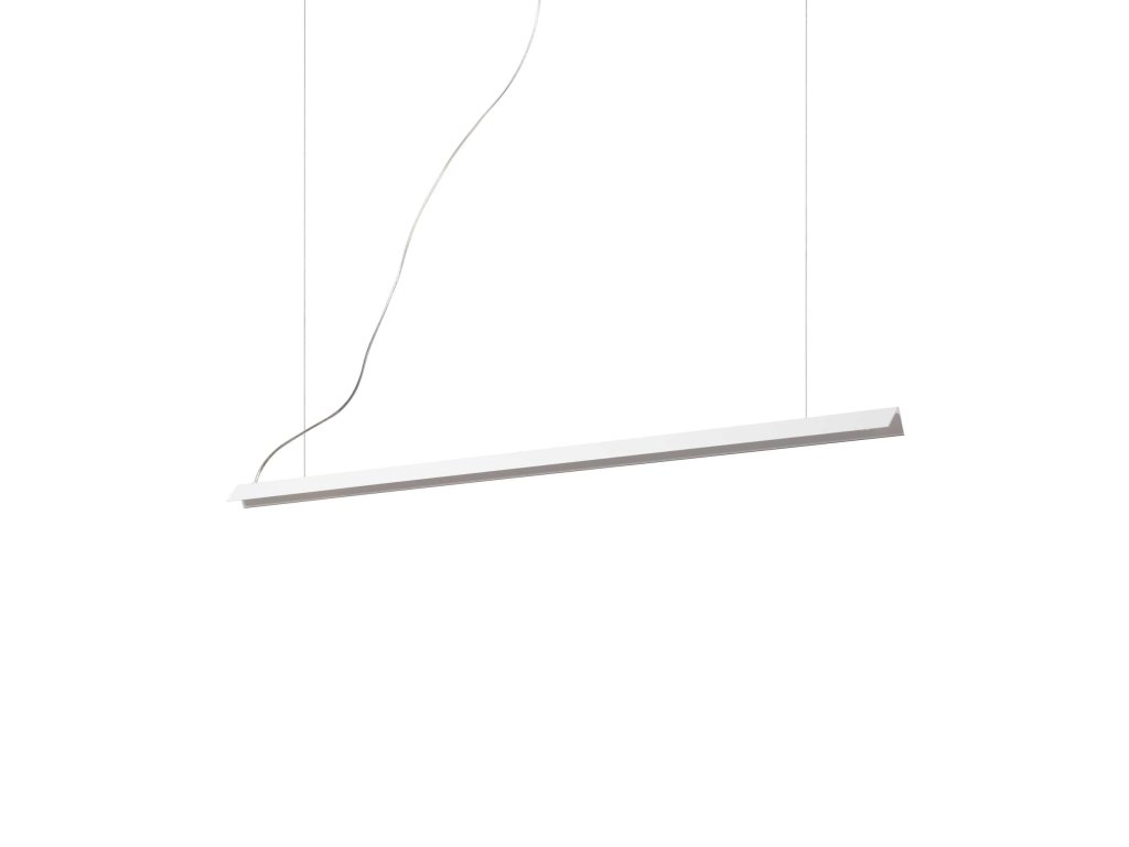 Závesné svietidlo V-LINE z kolekcie moderného osvetlenia značky Ideal Lux skvele osvieti Vašu jedáleň, obývačku či kanceláriu. Vzhľadom k nízkemu krytiu IP20 nie je vhodné do miestností s výskytom vyššej vlhkosti vzduchu (pivnica, garáž, dielňa). Okrúhla základňa s priemerom 12 cm a hranatý rám svietidla do tvaru V sú zhotovené z odolného hliníka s bielou povrchovou úpravou nanášanou metódou práškovania. Vnútri silikónového difúzora opálovej farby sa skrýva integrovaný LED zdroj s príkonom 1 x 25 W so svietivosťou až 1450 lm a teplotou chromatickosti 3000 K (neutrálne žlté svetlo). Intenzitu nie je možné stmievať. Životnosť zdroja dosahuje až 20 000 hodín. Rám svietidla je zavesený na oceľových lankách s chrómovými úchytmi, ktoré sa pripevňujú priamo k stropu. Z guľatej základne vedie plastový prívodný kábel. Výšku závesov je možné regulovať. Celkové rozmery svietidla sú 233 x 110 x 3,4 cm. Je určené na napájanie zo siete na 220-240V.Dodatočné parametre