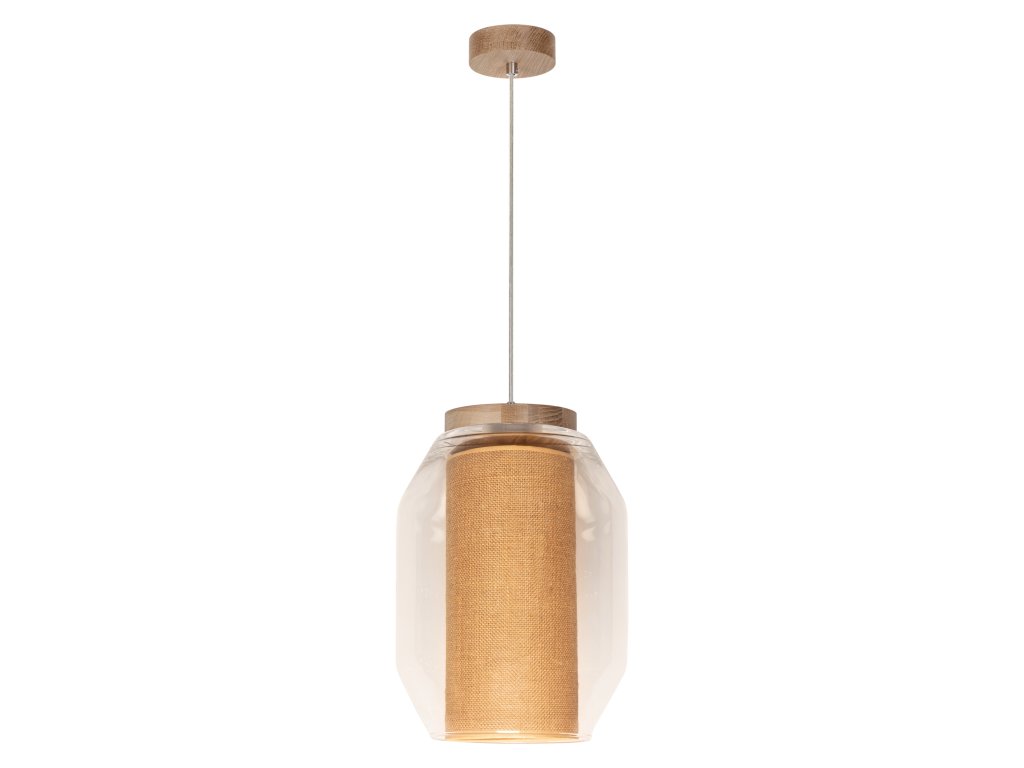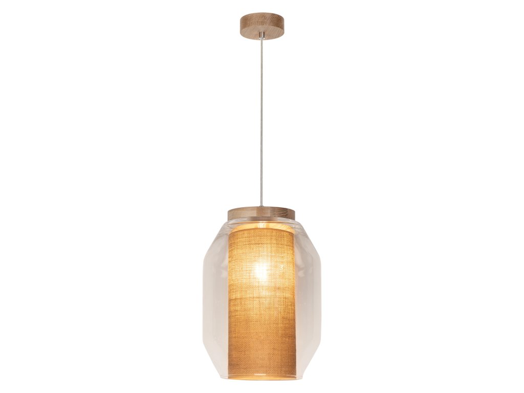 Závesné svietidlo VASO JUTE je elegantné a štýlové riešenie osvetlenia vášho vnútorného priestoru. Tienidlo je tvorené kombináciou textilu v béžovej farbe, číreho skla a olejovaného dubového dreva, čo dodáva svietidlu prirodzený vzhľad.