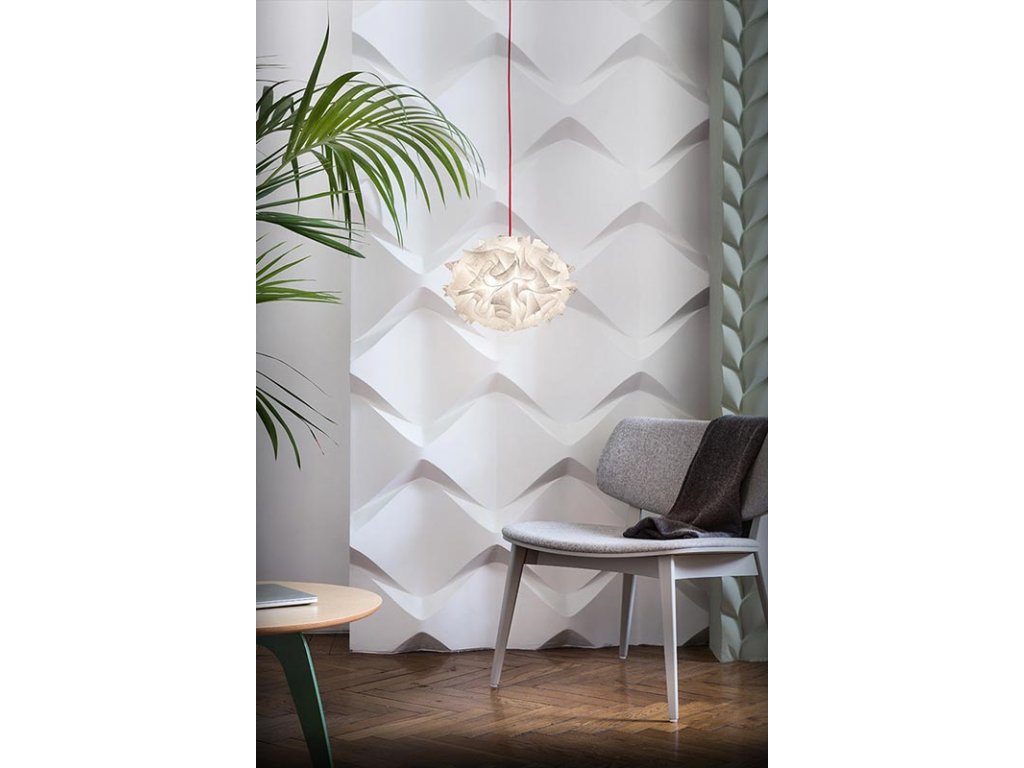 Veli Mini je dramatické závesné svietidlo s jedným vrchlíkom a štyrmi, tromi alebo jednou kaskádovou guľou. Každý svietiaci difúzor z nerozbitného technopolyméru Opalflex® potlačeného jemnou štruktúrou tón v tóne je ručne vyrobený v talianskom ateliéri Slamp. Červená omotaná šnúra, ktorú je možné na prianie nahradiť priehľadnou, vnáša do elegantnej a svižnej kolekcie nádych irónia. Jej bohaté a hrejivé svetlo je ideálne pre domáce aj veľké verejné priestory. Každý difúzor je vybavený magnetickým závesným zariadením pre rýchlu a jednoduchú údržbu.
