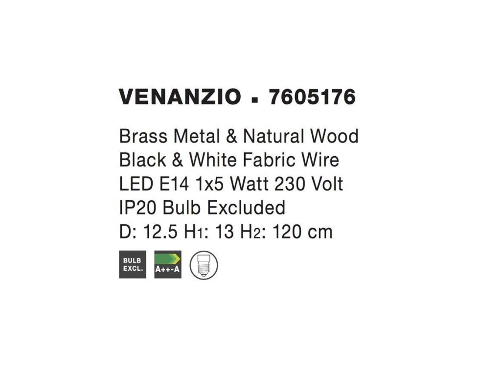 Závesné svietidlo VENANZIO s objímkou z prírodného dreva as tienidlom z kovu k dispozícii v štyroch variantoch - nikel, meď, mosadz a matná čierna. Rozmery tienidla sú d12,5 x v13 cm, celková výška svietidla je 120 cm. Svietidlo vynikne napríklad vo vašej obývačke či spálni. Žiarovky E14 nie sú súčasťou balenia.