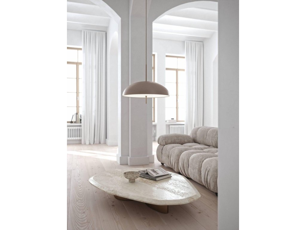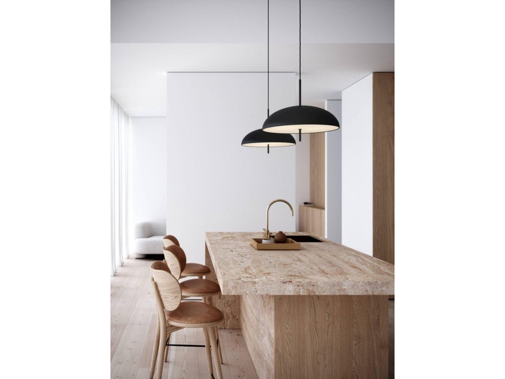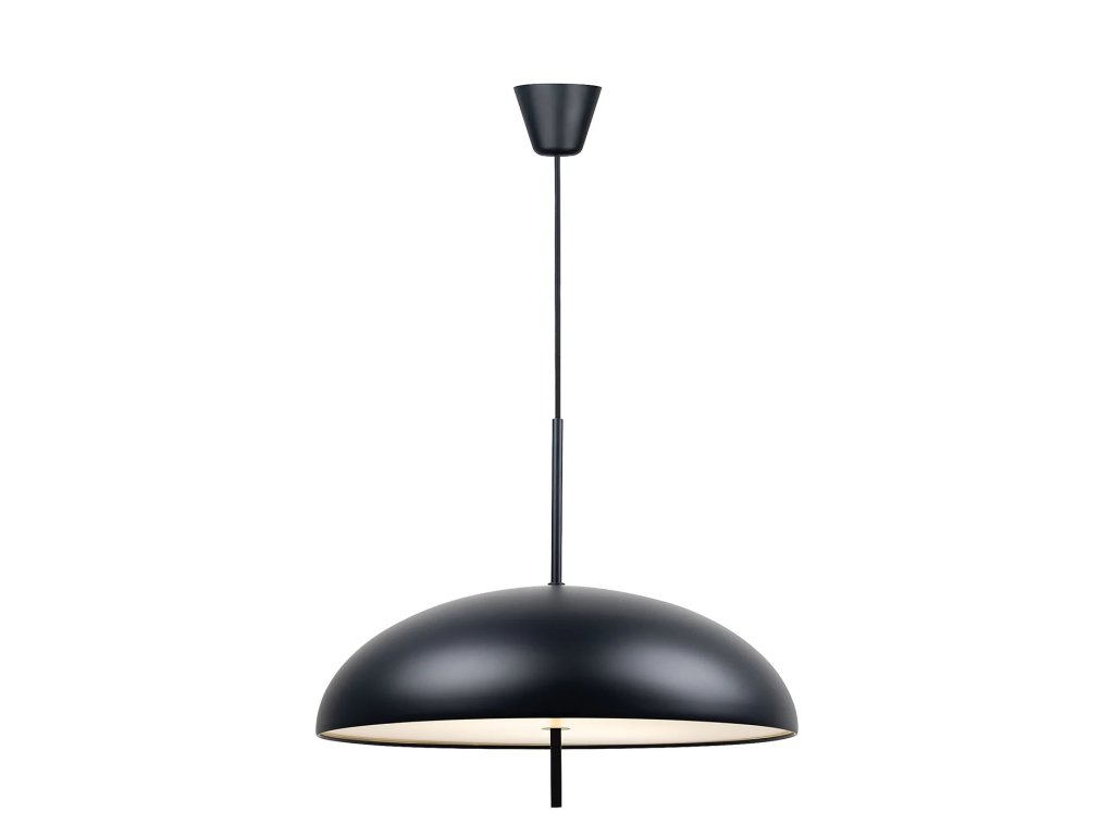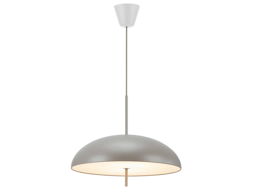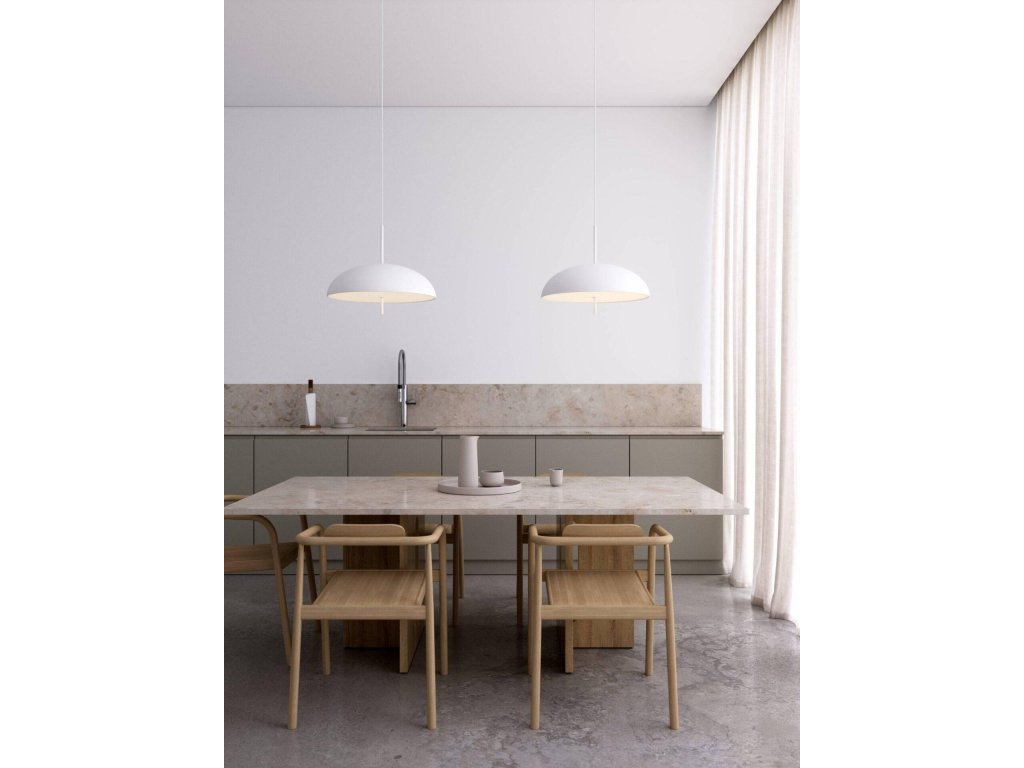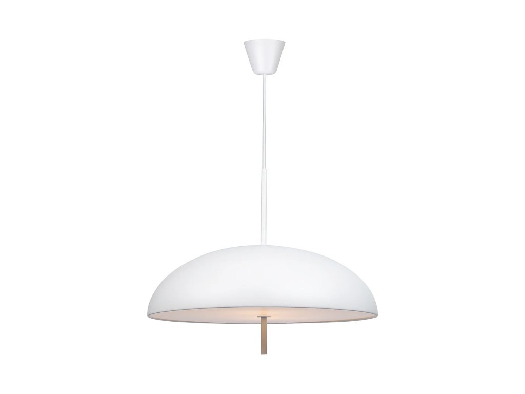 Dokonale okrúhle tienidlo s jednoliatym bielym, čiernym alebo hnedým povrchom je vyrobené z kovu doplnené plastovým difúzorom, ktorý prepúšťa príjemne rozptýlené neoslnivé svetlo. Veľmi dobre sa bude vynímať ako solitér napríklad v obývacej izbe alebo spálni, ale skvele budú fungovať aj dve svietidlá zavesené vedľa seba napríklad nad jedálenským stolom.