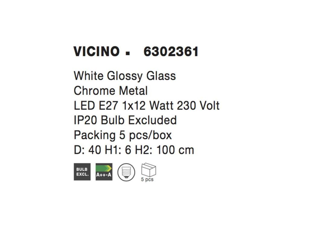 Závesné svietidlo VICINO biele lesklé sklo chrómovaný kov E27 1x12W