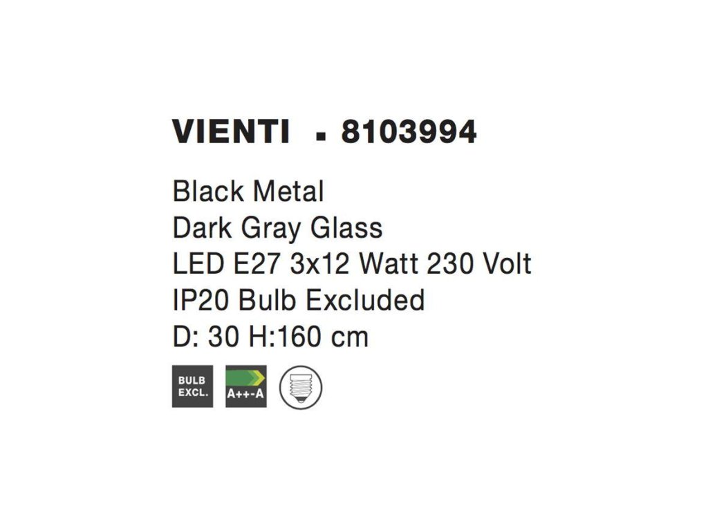 Závesné svietidlo VIENTI tmavo šedé sklo, 30cm, E27 3x12W