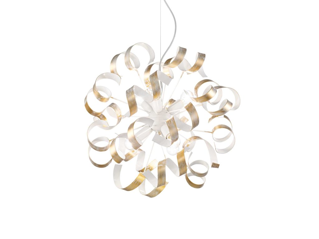 Závesný luster Vortex značky Ideal Lux v klasickom prevedení s priemerom 53 cm ponúkne ideálne osvetlenie obývacej izby, spálne či kuchyne. Rám svetla je zhotovená z kvalitného lakovaného kovu s matne bielou povrchovou úpravou. Dominantou svietidla je úchvatné ručne tvarované a lakované tienidlo zdobené pozlátenými kovovými útvarmi v tvare špirál. Výšku zavesenia lustra je možné flexibilne nastaviť podľa potreby pri inštalácii svietidla od 65 cm do 115 cm. Svietidlo je osadené päticami E14 pre žiarovky s maximálnym príkonom 6 x 40 W. Žiarovky nie sú súčasťou balenia. Odporúčame zvoliť LED žiarovky, ktoré šetria elektrickú energiu. Krytie IP20 je vhodné na použitie do interiéru. Celkové rozmery svietidla sú 115 x 53 x 53 cm. Je určené na napájanie zo siete na 220-240 V.Dodatočné parametre
