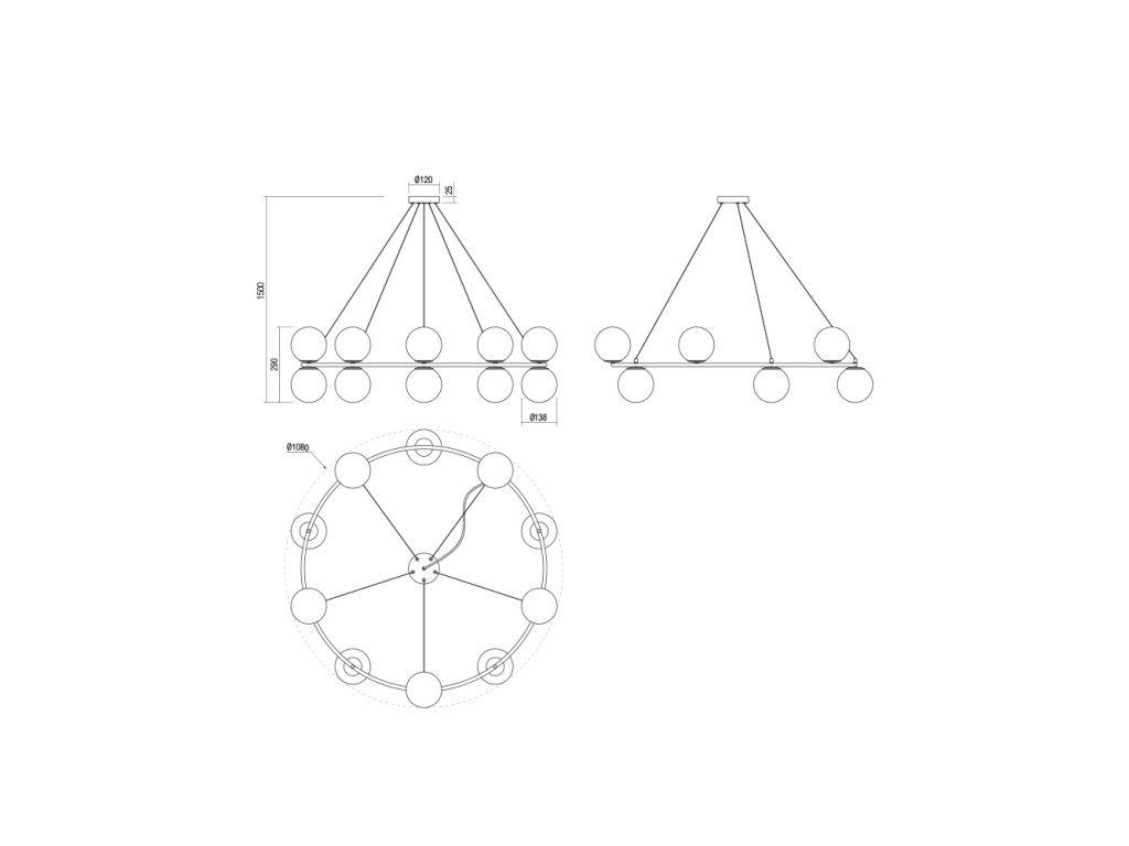 Závesný luster Bowling, ø108cm, 10xE14