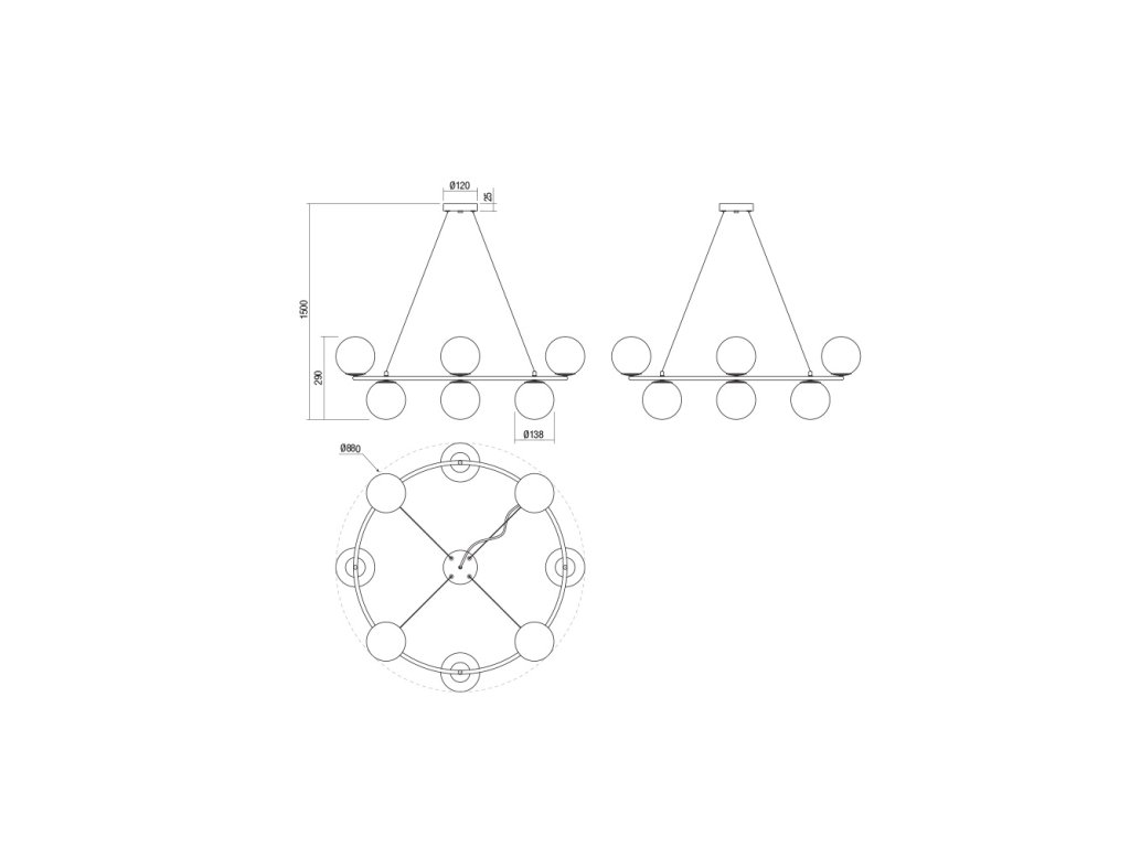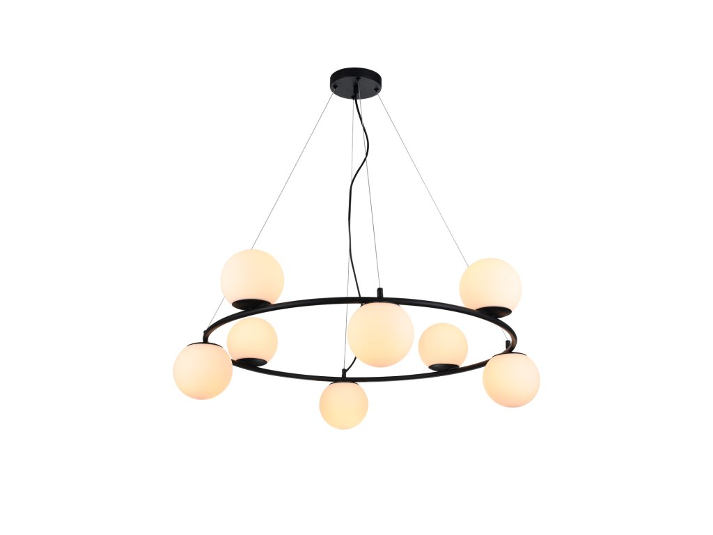 Luster, kovová konštrukcia lakovaná pieskovo čiernou alebo medenou, opálovo bielym fúkaným skleneným difúzorom.