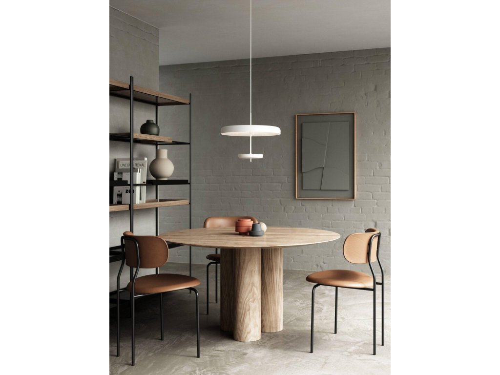 Skladá sa z dvoch zaoblených častí, ktoré sú zámerne posuvné. Tým sa svetlo odráža od spodnej časti a vydáva príjemné rozptýlené svetlo bez nežiaduceho oslnenia. Navyše sú na lustra mosadzné detaily, ktoré mu dodávajú punc elegancie. Môžete si tak zaobstarať krásny dizajnový kúsok, ktorý je prepracovaný, dodá Vám dostatok svetla a skvele sa bude vynímať nad Vaším jedálenským stolom.