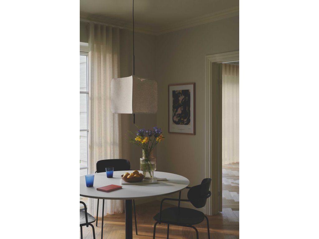 Tinto je závesné svietidlo v modernom jednoduchom dizajne. Trojuholníkové tienidlo visí na tenkom závese a vytvára ľahký a elegantný vzhľad. Tinto poskytuje útulné, rozptýlené svetlo, ktoré sa perfektne hodí nad jedálenský stôl alebo do rohu v obývacej izbe.