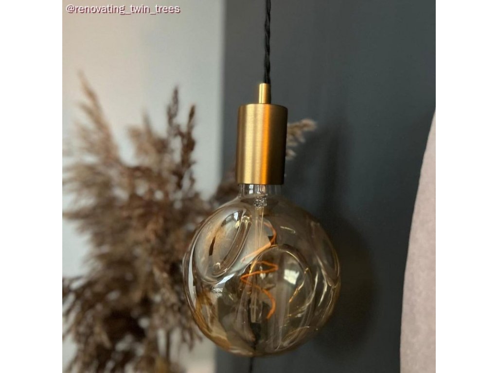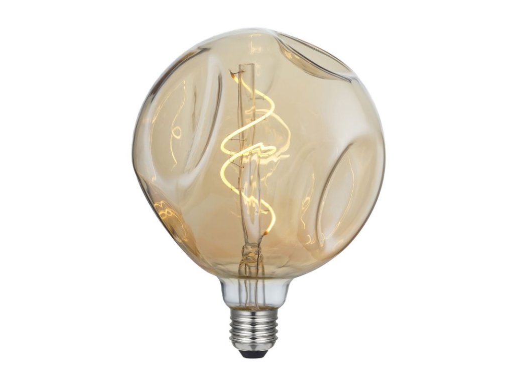 Zlatý LED svetelný zdroj G140 je doplnený dlhým špirálovým vláknom Kombinuje v sebe klasické svetlo a nové trendy v interiérovom dizajne. Vďaka originálnemu tvaru a tmavej povrchovej úprave sa skvele hodí do industriálneho prostredia. rovnakú atmosféru a rovnaké kúzlo ako žiarovka s uhlíkovým vláknom, ale výhodou je oveľa nižšia spotreba energie, iba 5W.