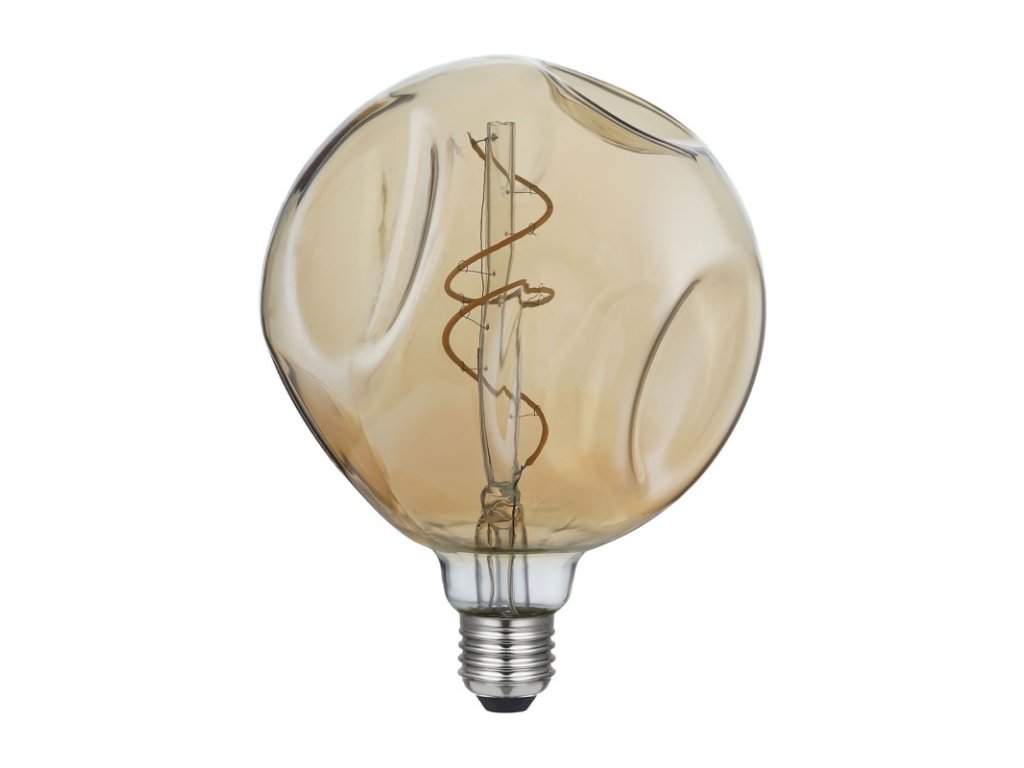 Zlatá LED žiarovka deformovaná G145 špirálové vlákno 5W E27 stmievateľná 1800K