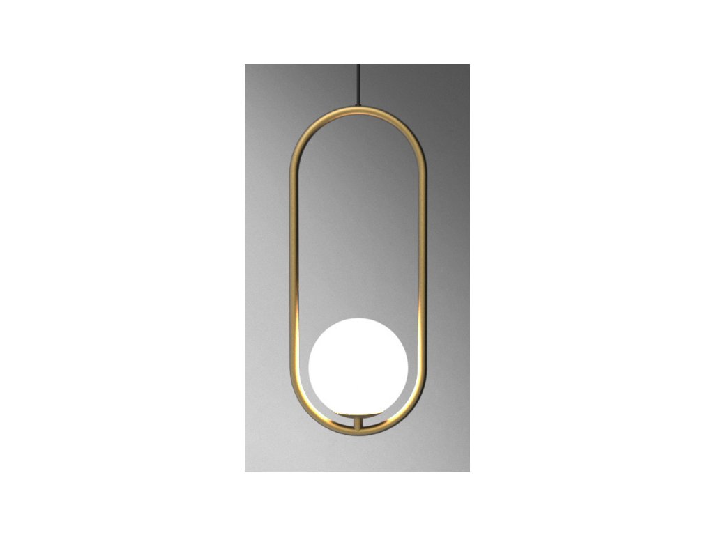 Toto závesné svietidlo je minimalistické osvetlenie tvorené kombináciou opálového tienidla v tvare gule a kovovej konštrukcie mosadznej farby. Vneste do svojho domova jemný a elegantný doplnok a tiež príjemnú atmosféru.
